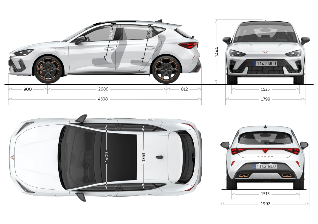 Континуирана светлосна лента со осветлено лого на CUPRA на задната страна